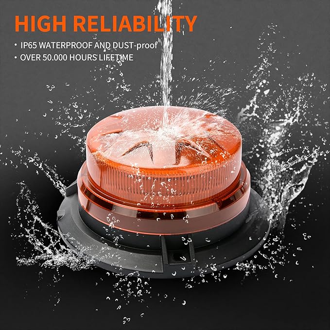 - 【Red Enhanced Visibility】Low-profile design, durable polycarbonate plastic cover with built-in 24 super bright high intensity LEDs provides 360-degree of high visibility at day or night, raining or fog days. The waterproof rating of this LED beacon light is IP65. Brighter and more effective than standard LED Strobe Lights. Bright amber light could be seen easily in rain, fog and snow weather to warn other vehicles. The service life is up to 50,000 hours.