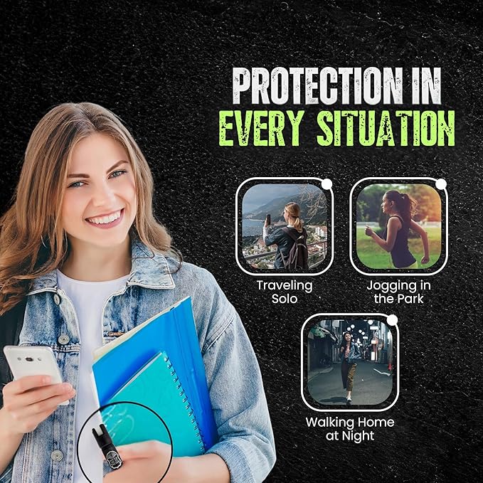 - Built-In Key chain - Tough & durable for everyday carry protection in a compact black can. Ideal for women and men to carry on their keys or in their bags to have security with you anywhere you go and a glow in the dark version to quickly see where to press and fire at night to save precious seconds to defend yourself.