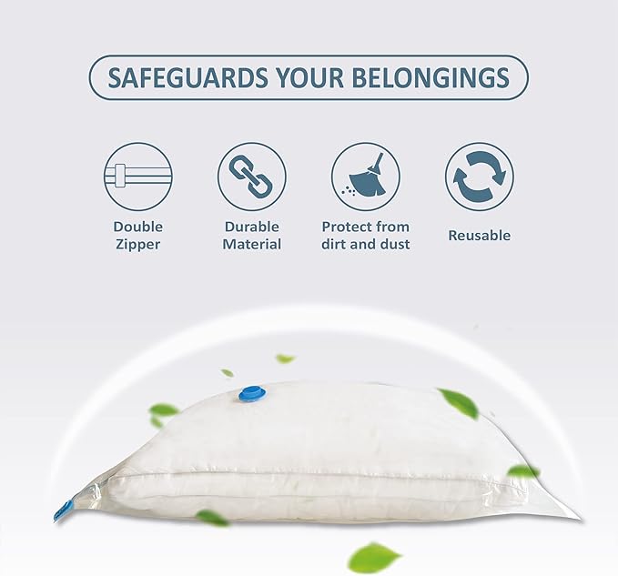 - Premium Material: Professionally designed double zip seal and triple-seal turbo valve achieve air expulsion. The airtight and watertight material protects your item from dust, dirt and other damages.