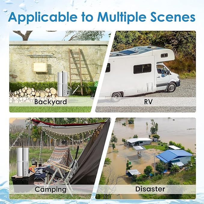 - Certification, large capacity: The Waterdrop King Tank gravity-fed water filter system comes with a 2.25-gallon large capacity, thereby meeting water demands of a family of 4 people for pure water indoors and outdoors. This water filter system has passed authoritative NSF/ANSI 372 certification, and the black carbon filter is certified against NSF/ANSI 42 for the reduction of chlorine, taste and odor.