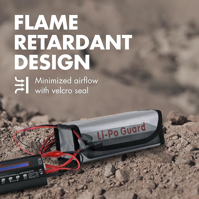- Fire retardant lipo battery bag - Made with triple-layered flame retardant protection material.