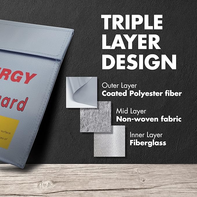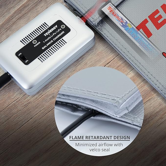 - Fire retardant lipo battery bag - Made with triple-layered flame retardant protection material.