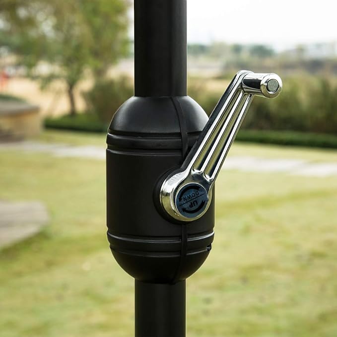 - This Patio Umbrella include Push Button Tilt/Crank. Note:The base is not included in this item.You can buy the sunnyglade umbrella base (ASIN:B06XT1TFJN) to match it.