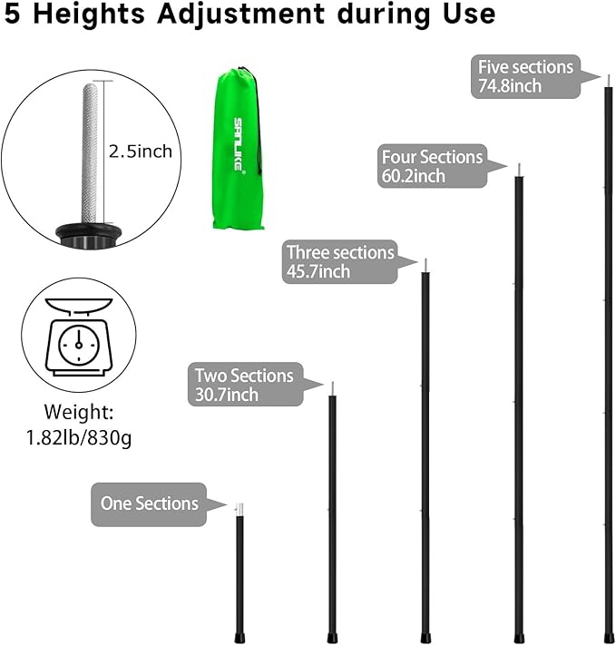 - Perfect Adjustable Design Length Satisfies Your Multiple Height Needs:Each tarp tent pole has 5 sections that extend from 31.3 inches to 74.8 inches in length.The middle SAN LIKE tarp poles are all the same length, and you can choose how many to carry as needed.