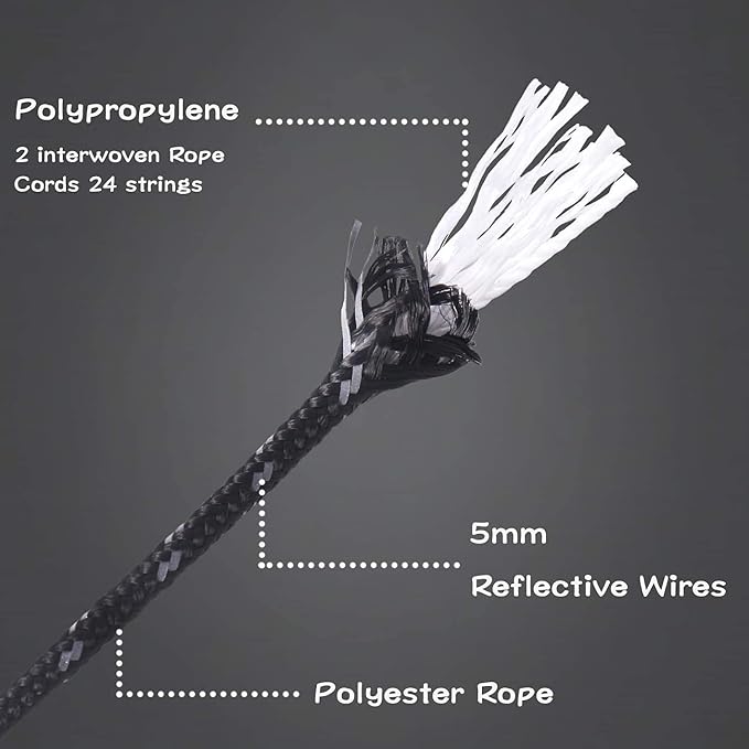 - STRENGTHEN REFLECTIVE:Different from the usual 1 reflective guy rope,HIKEMAN reflective cord has 2 interwoven reflective wires which giving greater visibility even there is very little light;