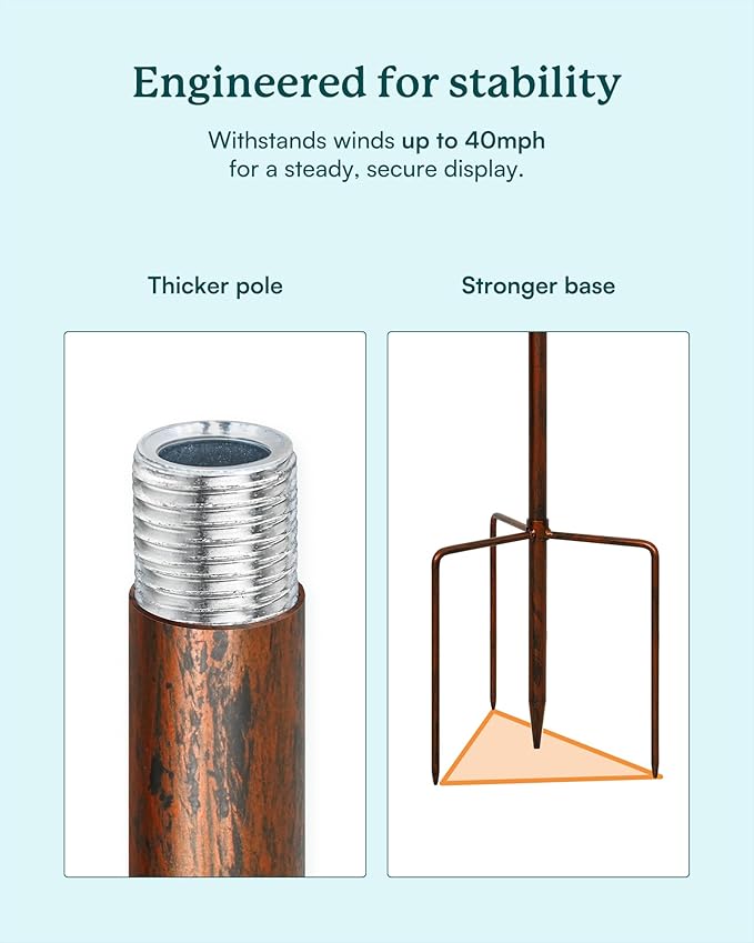 - BEAUTIFUL TULIP DESIGN: This stunning metal yard spinners features a lovely copper finish and tulip design. Dual rotors spin independently and rotate 360 degrees. The kinetic yard wind spinners has thickened poles (diameter 22mm, 40% thicker than others) and stable metal stake with three prongs to ensure its firmly planted for windy days and against a snowy landscape.