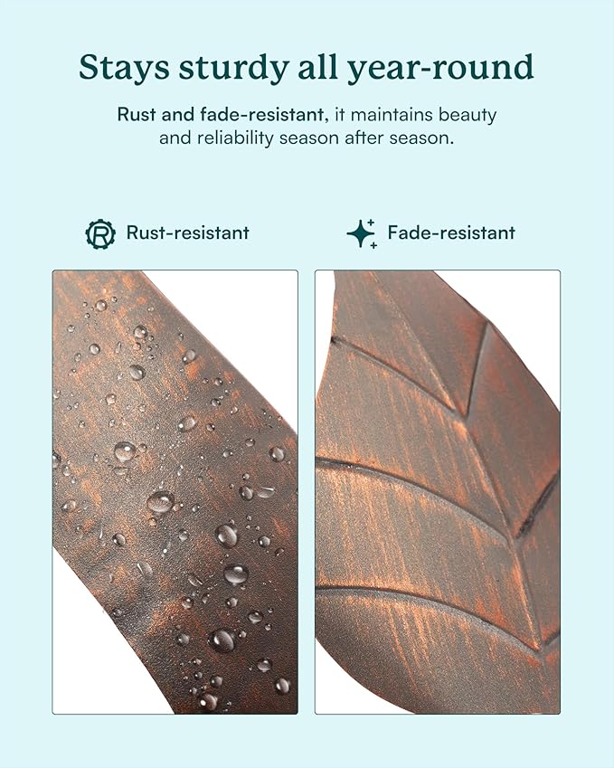 - STURDY OUTDOOR METAL DECOR: Made of sturdy metal with protective coating finishes. UV, RUST, and FADE RESISTANT. The all-season decorative spinner can be cleaned easily to keep its shine and rustic appearance. Long-lasting use.
