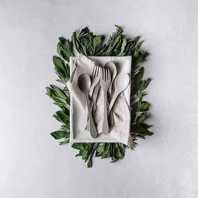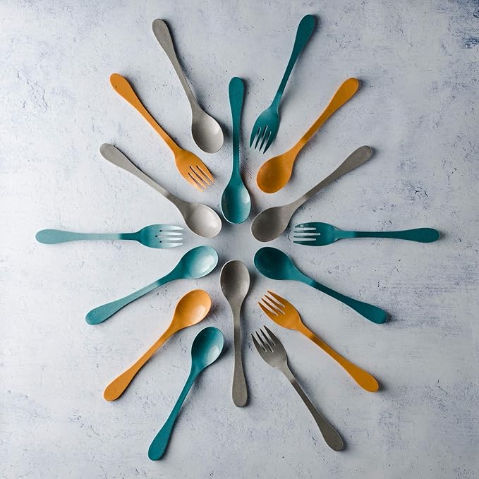- Set includes: 1 gray Eco Knork Fork, 1 gray Eco Spoon, 1 gray Eco dual purpose Knife - all measure 6.75" in length