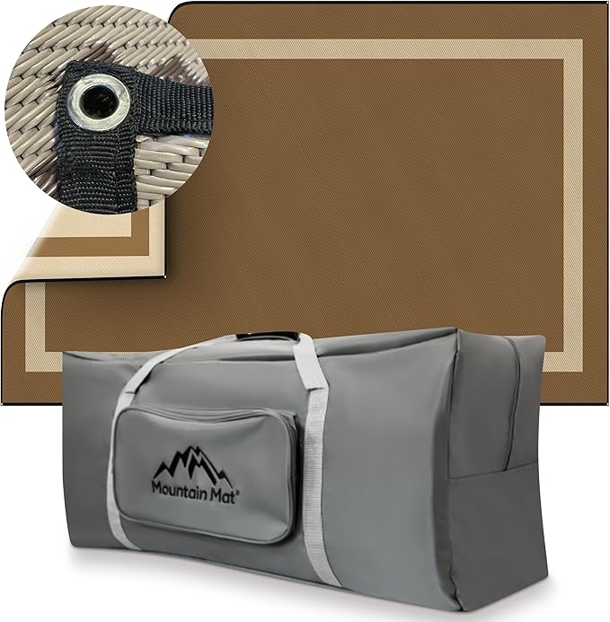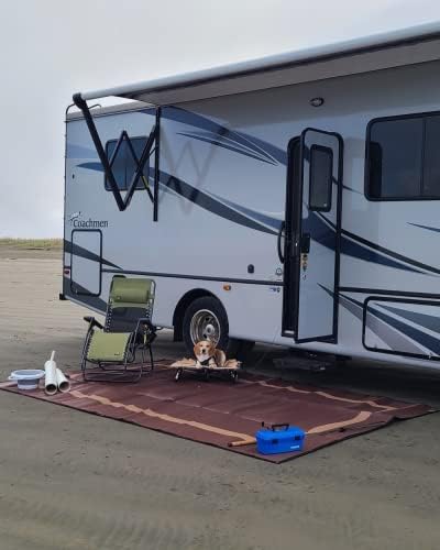 8x20 Brown RV Patio Mat with Carry Bag – Extra Thick 5mm Recycled Poly Rug – Heavy-Duty, Waterproof, Reversible – Premium Outdoor Mat for Camping, Deck (8' x 20', Brown Solid)