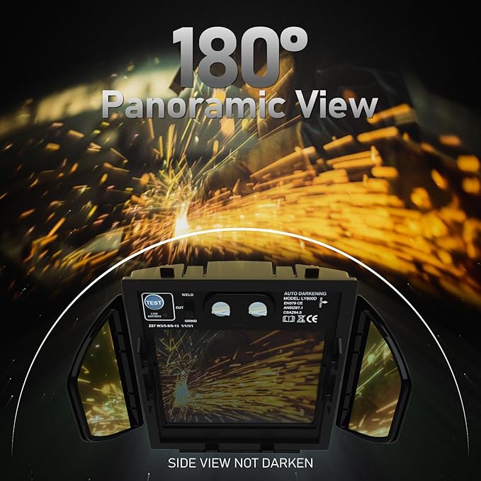 - Panoramic LARGE VIEW: The welding hood is equipped with a 3.94" x 3.23" Large View with Side View (DIN5, non-auto-darkening) featuring 1/1/1/1 optical clarity lenses and True Color technology
