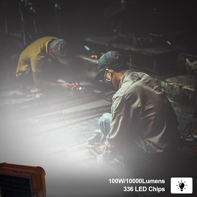 Portable LED Work Solar Light 100W 16500mAh 10000 LM with Stepless Brightness Job Site Battery Rechargeable LED Floor Light for Emergency Worklight for Hurricane Father's Day Gift