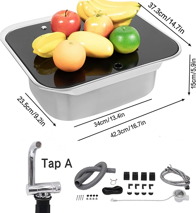 - Material : Sink material: 304 stainless steel,lid material: tempered glass