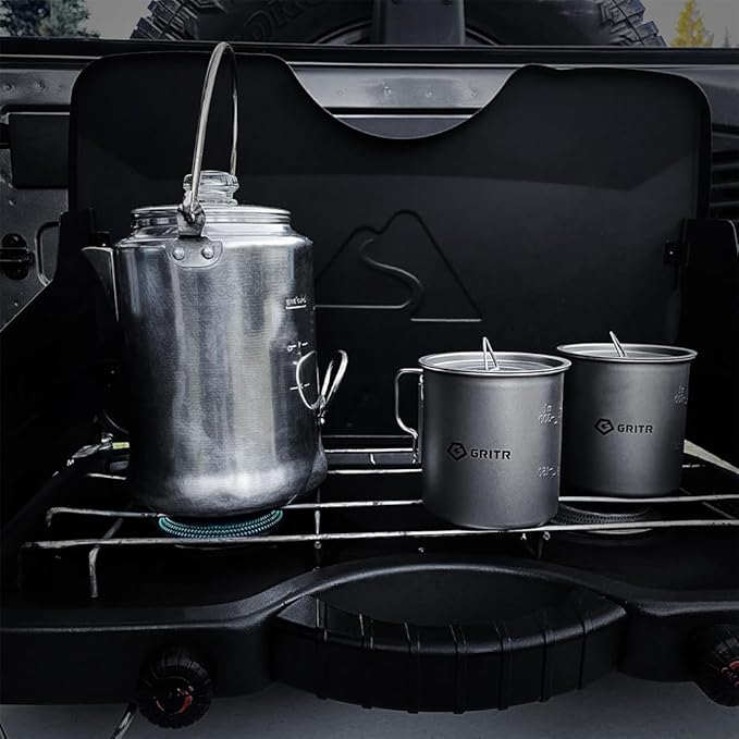 - Multi-Purpose Use - A tea cup or a camping pot? You decide! The GRITR titanium mug is a versatile piece of outdoor gear; It conducts heat rapidly and can be used as a small boiling pot, tea or coffee mug, water cup, container for survival items, or camping cookware; Safe to use on a campfire and portable stove; This ultralight coffee pot is great for camping, hiking, backpacking, survival, picnicking, or any other outdoor adventure