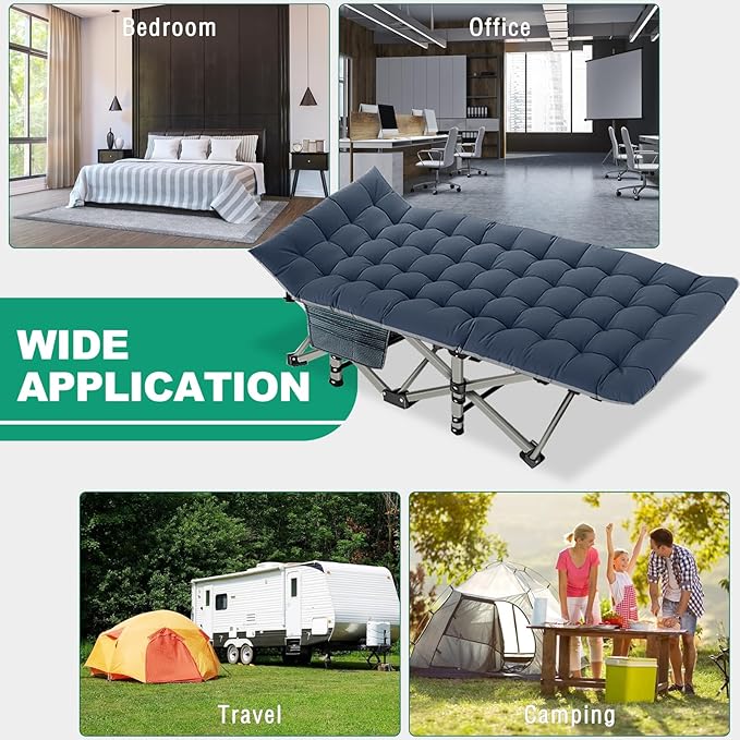 LILYPELLE Folding Camping Cot, Extra Wide Heavy Duty Sleeping Cots with Carry Bag, Double Layer Oxford Portable Travel Camp Cots for Home, Office Nap and Outdoor Beach