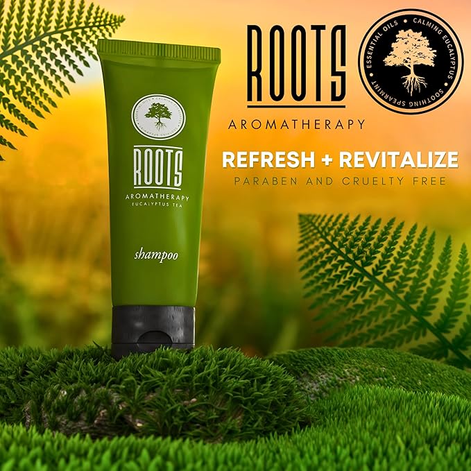 - ๐ฟ REFRESHING & ENERGIZING: Immerse yourself in the invigorating blend of Australian Eucalyptus and rejuvenating tea fragrance. This travel size shampoo and conditioner set, part of our Roots Aromatherapy Eucalyptus Tea Hotel Soaps and Toiletries Bulk Set, harnesses the power of nature to rejuvenate your senses, leaving you refreshed and revitalized after every use.