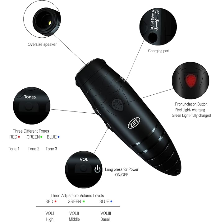 - 👍【Unquine Design with Intelligent light 】Unique oval shaped design with cicada totem, offer you a good sense of grip. The Intelligent indicate lights will be changed according different tones and different volum level . The electronic whistle is made of high-quality ABS environmentally friendly materials, tasteless and healthy.
