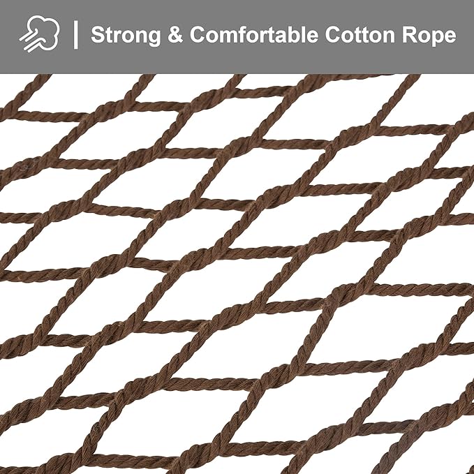 - Upgraded 30% Thicker Ropes: The upgraded strong polyester ropes are hand-woven with comfortable, long-lasting threads woven by the hammock artisans, 30% thicker than before. When you lay on the rope hammock, it helps you relieve stress and provide better blood circulation throughout the body. And thanks to the well ventilated mesh, your back won’t be sweaty anymore