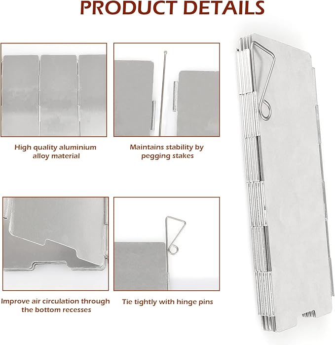 - 【WIDE APPLICATIONS】- Aluminum outdoors stove windshield is for securely blocking wind for stoves in camping, hiking, backpacking, picnicking outdoors; for both gas backpack stoves as well as wood burning stoves.