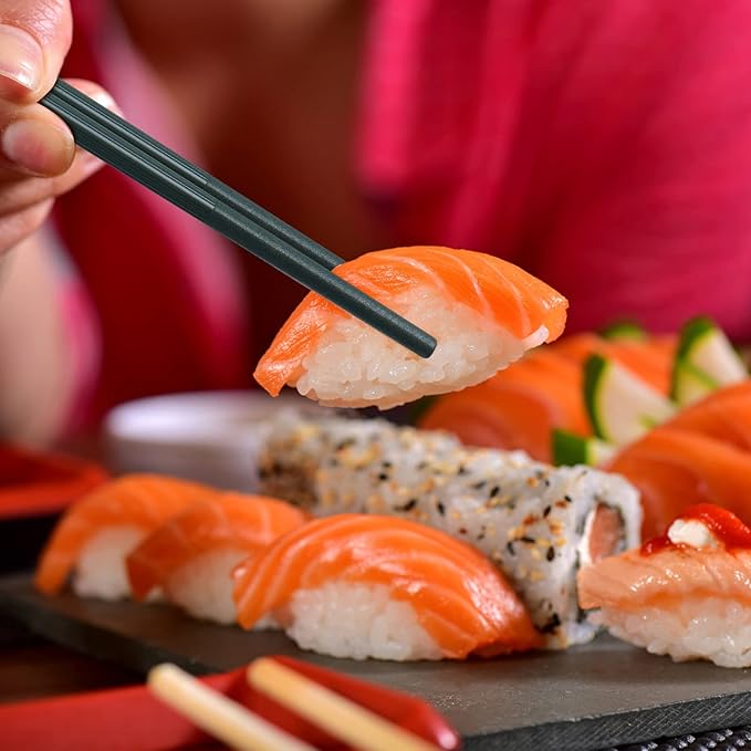 - 【Easy to Use and Clean】These chopsticks have a smooth surface with no burrs, anti-slip tips, and a square body which are perfect for Chinese food, sushi, and noodles. These chopsticks do not absorb oil and are easy to clean, just wash them with soapy water or neutral detergent. Dishwasher safe.