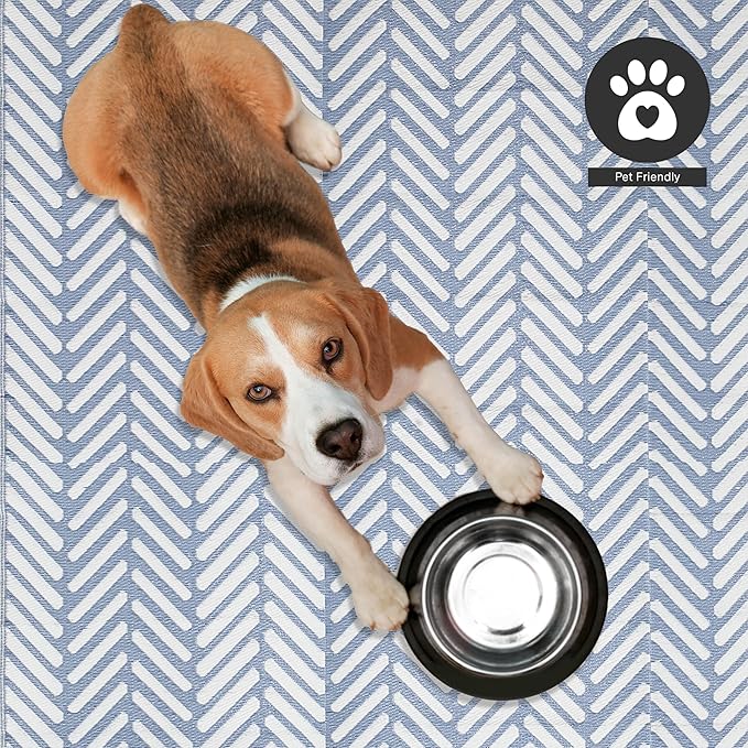 FH Home Outdoor Camping Rug - Waterproof, Fade Resistant, Reversible - Premium Recycled Plastic - Herringbone - Large Patio, Deck, Sunroom, RV - Fresno - Light Blue - 9 x 12 ft Foldable