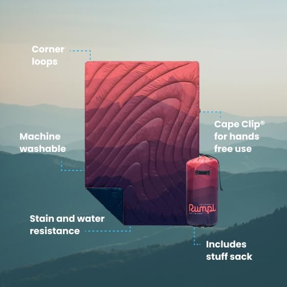 Rumpl Original Puffy Blanket - Warm, Water-Resistant Camping Blanket with 100% Recycled Synthetic Insulation, 52"x75", Original Puffy V1, Rocky Mountain Fade