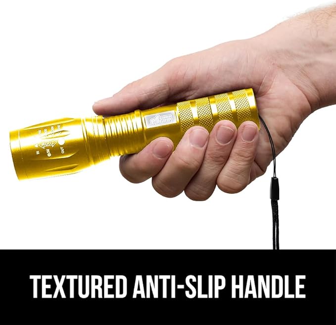 GORILLA GRIP Powerful LED Tactical Flashlight, 750 FT High Lumens 5 Adjustable Modes, Water Resistant, Ultra Bright Zoom Flashlights, Small Mini Flash Light, Camping, Night Dog Walking, 2 Pack Gold
