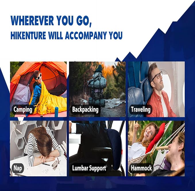 - πππππππ, ππππ πππππππ πππ πππππ ππππ πππππππ: Look no further for the most light, comfortable, compact inflatable pillow for camping on the market! Weighs only 5oz for backpacking, Hikenture camping pillow lightweight can expand to 17x10.5x4.3 inches, and pack down to 6x3 inches, as smaller as a soda can! Ideal for camping, backpacking, hiking, beach or used as lumbar support for plane travel and office.