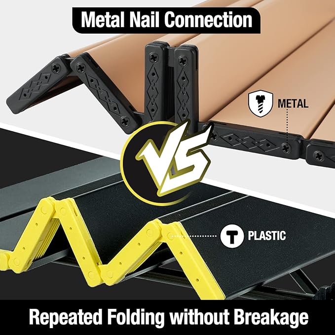 - Hinged Connection Upgrade: VILLEY camp table has a unique metal screw design that works with hinges to connect each panel of the table, unlike other similar foldable tables that connected with bungee cords or plastic nails, heavy-duty metal nail attached hinges make the snack table more stable, allow it to last for many years