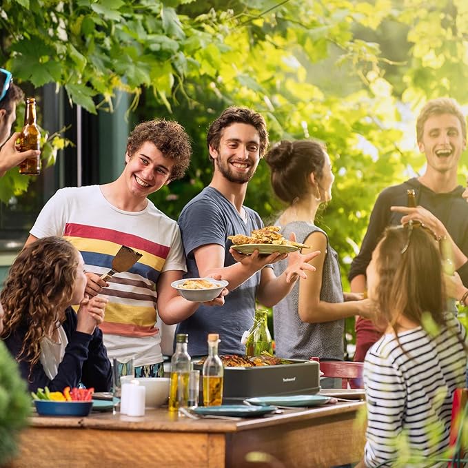 - [Enjoy Wherever, Whenever You Are!] - Bring the thrill and flavors of a BBQ and enjoy authentic grilled flavors indoors with this smokeless grill from Techwood. This electric grill is virtually SMOKE-FREE! Can turn your kitchen countertop or indoor cooking space into an open grill, without filling the room with smoke and setting off smoke alarms. Thanks to our advanced Turbo Smoke Extractor technology you can grill indoors year round regardless of the weather.