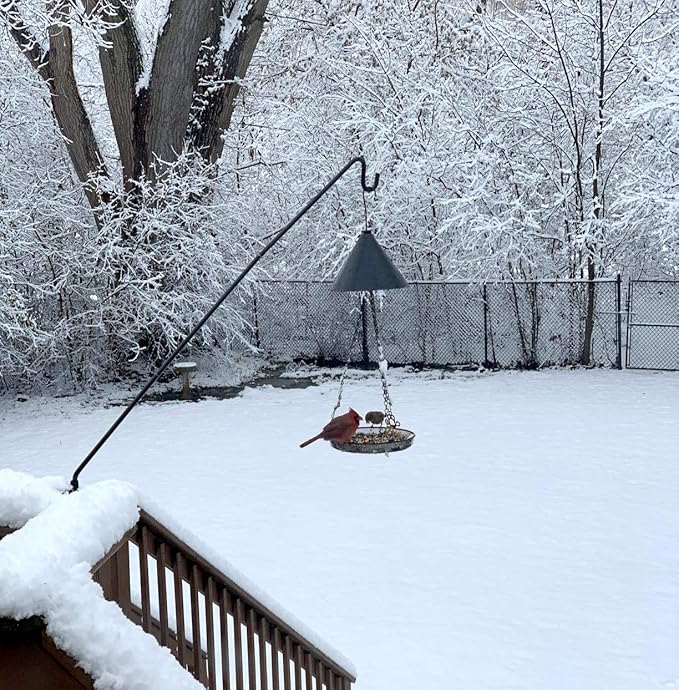 - Deck Hook Smart Designï¼?3-inch bird feeder pole, a longer distance guard against squirrels. Things like bird droppings and seeds all fall off the deck, making it easier for you to clean up.2 Packs