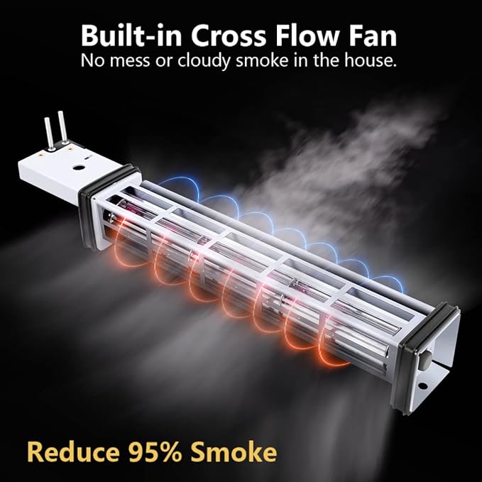- Worried about smoke from indoor grills?--Cusimax Smokeless Grill with Turbo Smoke Extractor brings away most smoke when grilling. You don't have to worry about triggering the smoke alarm or make the whole condo smell like a BBQ restaurant when cooking. An real electric INDOOR GRILL.