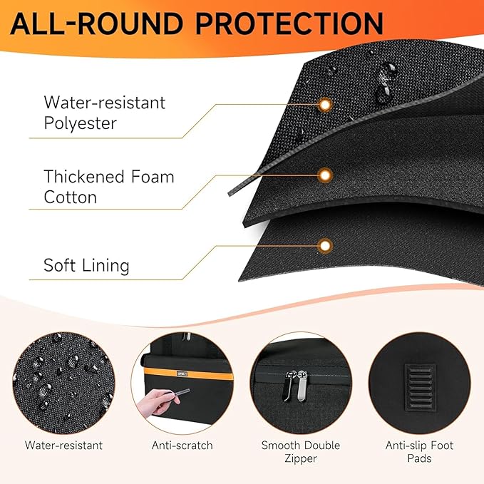 - 【Multiple Protection】This storage bag is made of tear-resistant and waterproof material, with a thick inner lining, which can effectively protect your power station from dust, scratches and moisture. The non-slip foot pad provides good support while avoiding direct contact with the ground, reducing friction, strong and durable.