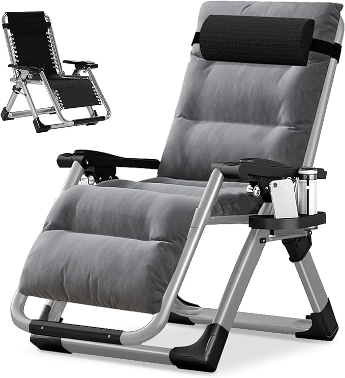 NAIZEA Padded Zero Gravity Chair, Folding Outdoor Lounge Chairs, Adjustable Reclining Camping Chairs with Cup Holder, Ergonomic Patio Lawn Chair for Balcony Beach Deck Yard