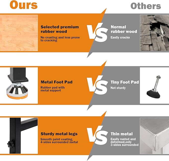 - 【HEAVY-DUTY RUBBER WOOD TABLETOP】48” x 23.6” wooden made,Betterhood adopts compression process to make it harder and more sturdy. Over 1500lbs capacity is enough to cope with a variety of uses in the reloading bench. Smooth and tough tabletop makes it easier whatever.
