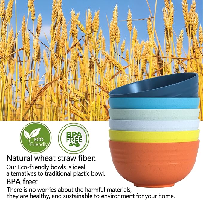 - ๐พECO-FRIENDLY BOWLS-Homestockplus salad bowl made of natural organic wheat straw fiber, 100% BPA free, non-toxic, odorless and environmentally friendly. No harmful chemical materials. Itโs healthy and beautiful tableware for your family.