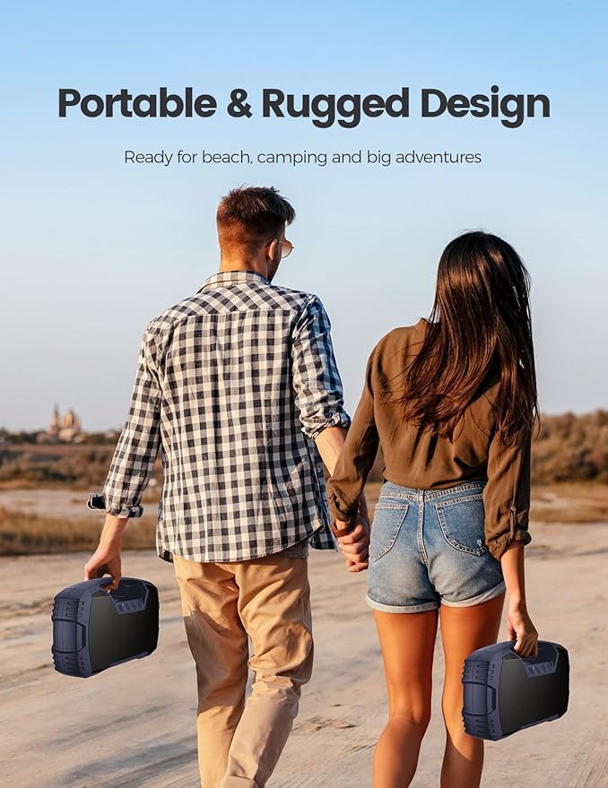 - Epic 32-Hour Playtime- Houl Zallee outdoor Bluetooth speaker delivers up to 32 hours of playtime on a single charge (Actual playtime may vary by the music content and sound volume). Enjoy loud sound with powerful bass and clear vocals at home, in the garage, or outside on the road. Its built-in large-capacity rechargeable batteries can charge phones or other devices, making it a great camping gift