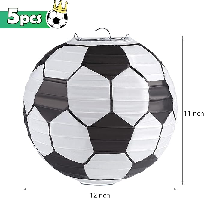 Kesoto 12 Inch Soccer Paper Lanterns - Pack of 5, Black, LED, Not Water Resistant, Soccer-Themed Paper Lantern, Lantern