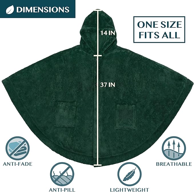 - WEARABLE BLANKET WOMEN WITH HOOD: Be cozy in style with our emerald green hooded angel wrap blanket poncho with pockets so you can lounge at home, on your sofa, couch, chair, for watching tv, reading, studying, or napping. This soft blanket poncho for women is designed to be worn as a poncho or draped over your shoulders like a shawl wrap so you can feel relaxed, comfortable, and warm anytime and anywhere. Hoodie poncho is great for outdoor activities, camping, sporting events, and travel.