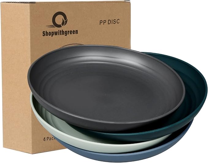 shopwithgreen Lightweight Plastic Plates - 4 Pack 10'' Unbreakable Dinner Plates, Dishwasher & Microwave Safe, BPA free, for Kids, Children, Toddler & Adult
