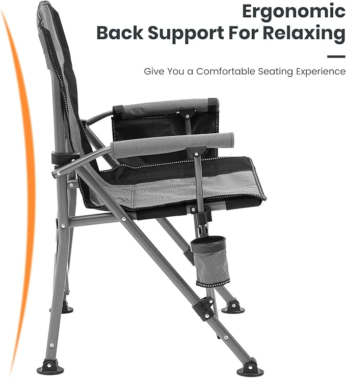 - High Back: this folding camping chair has 22 inches high back, provides you stable support.