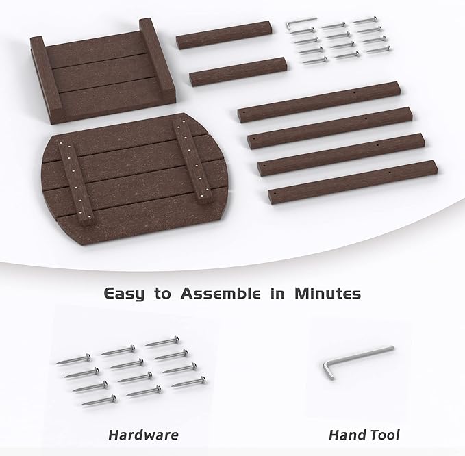- [Heavy Duty Adirondack Chair Side Table ]This side table is not one of those lightweight chairs with a heavy plastic feel. It has a wood-like texture and weighs about 8.6 pounds per table.So it can withstand the wind,sun and rain, and is not easy to deform and damage,great for outdoor use, or in humid conditions.