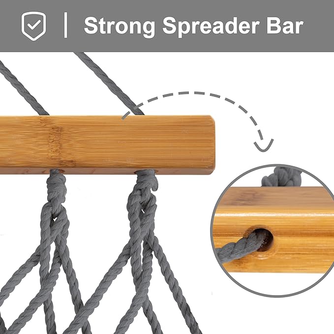 - Strong Spreader Bar: 55 inch spreader bars with marine varnish to seal are stylish and weather resistant. It features countersunk spreader bar holes which could reduce the friction between the rope and spreader bar