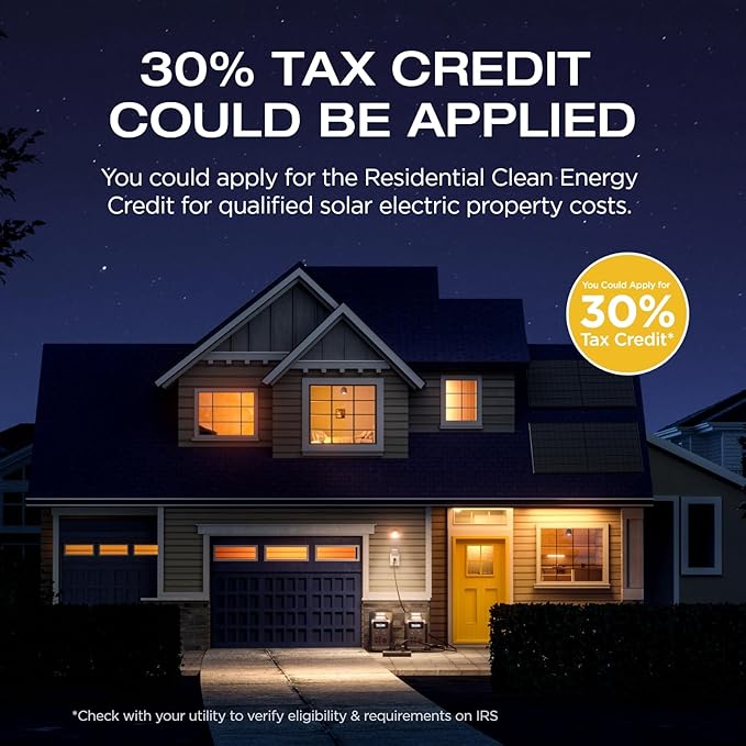 - 30% Tax Credit Could be Applied. You could apply for the Residential Clean Energy Credit for qualified solar electric property costs. Please check with your utility to verify eligibility & requirements for Residential Clean Energy Credit programs.
