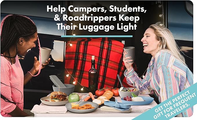 - ADVENTURE-READY TABLEWARE: Lightweight and compact, our set is your perfect companion for picnics, camping, RV trips, and outdoor adventures. Stylish, durable, and practical—take FOODLE wherever your adventures lead. ADD TO CART today!
