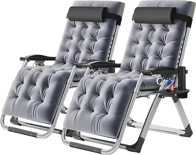 NAIZEA Padded Zero Gravity Chair, Folding Outdoor Lounge Chairs, Adjustable Reclining Camping Chairs with Cup Holder, Ergonomic Patio Lawn Chair for Balcony Beach Deck Yard