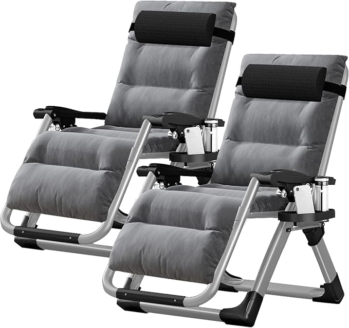 NAIZEA Padded Zero Gravity Chair, Folding Outdoor Lounge Chairs, Adjustable Reclining Camping Chairs with Cup Holder, Ergonomic Patio Lawn Chair for Balcony Beach Deck Yard