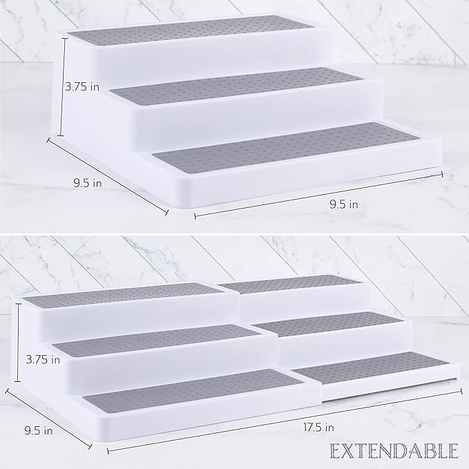 - VERSATILE: Not just for spices, the 3-tier expandable rack is great for cans, medicine bottles, cosmetics, nail polish, and arts and crafts too