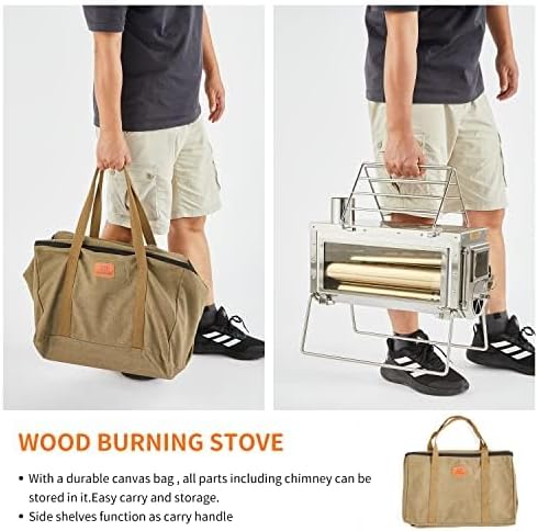 XCMAN Camping Tent Wood Stove with 6 Section Chimney Pipes,Three-View Windows Portable Wood Stove, Ice Fishing Shelters, Hunting, Outdoor Cooking Heavy Gauge 304 Stainless Steel