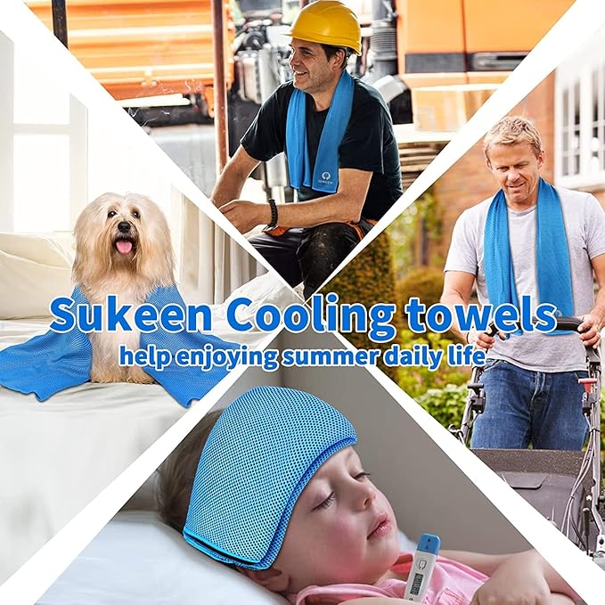 - COMFORTABLE & SKIN FRIENDLY: Sukeen cooling towels are made of high-density cooling mesh microfiber, which is silky soft, pliable and comfortable.These towels can absorb water & sweat, also let you stay dry when high intensity of exercise, achieve UPF 50 SPF.