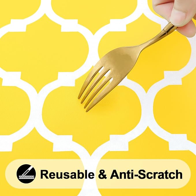 - [Waterproof & Wipe Clean] Our table cover surface is made of selected vinyl material, which can effectively waterproof. Spill proof coating makes tablecloth easy to clean, just wipe it off with a damp sponge or rag in a minute.